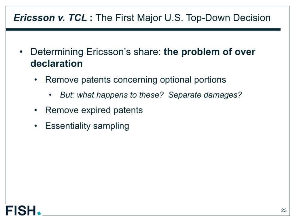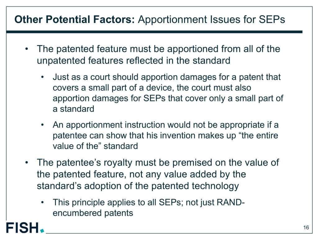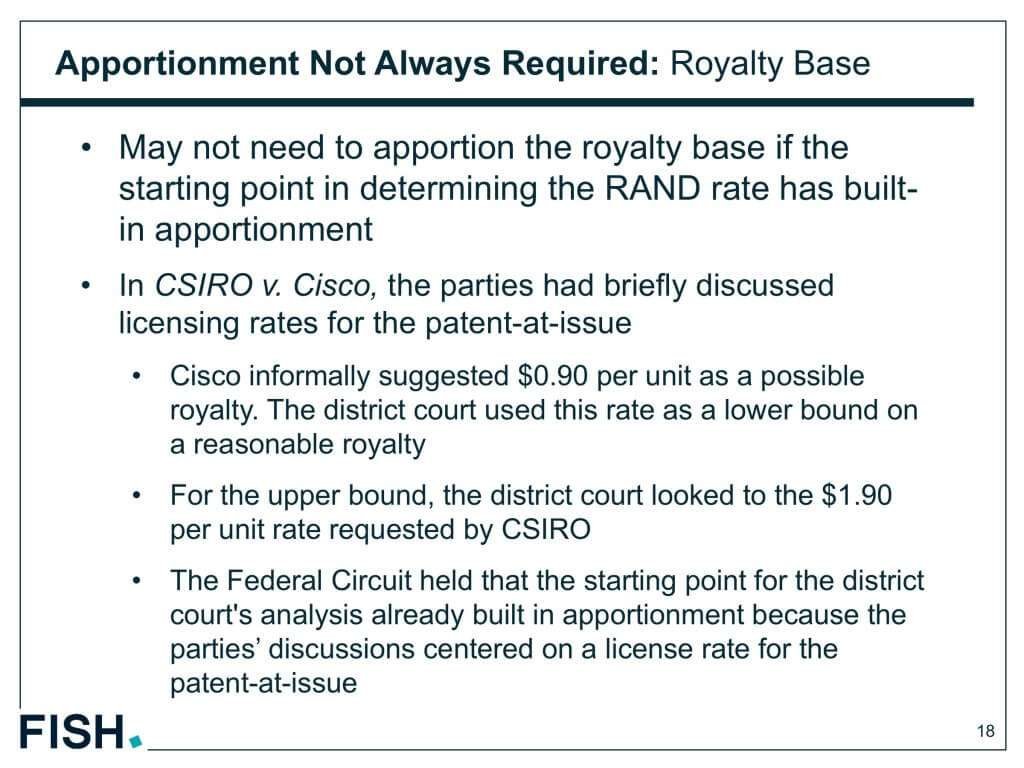 この訴訟では、交渉時にすでにこの特定の特許に関するライセンスに限定されていたため、分担は必要ないとの結論に至った。