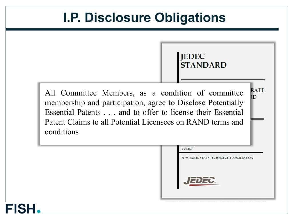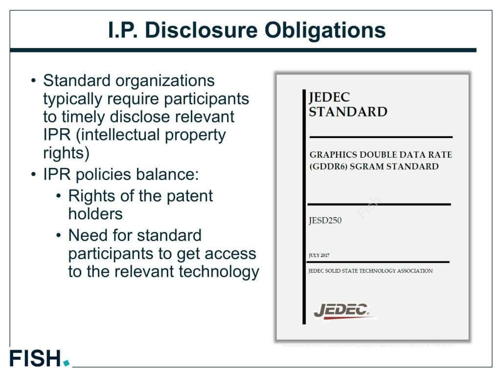 規格団体は通常、参加企業に関連する知財の速やかな開示を求めます。